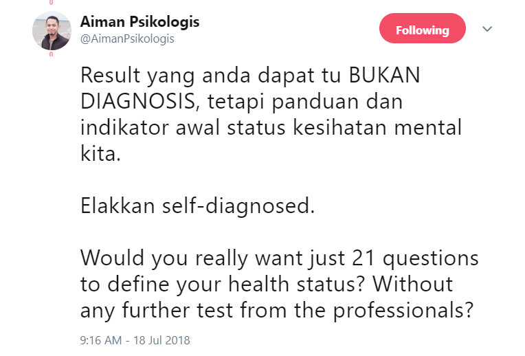 Let your health care provider know that you are thinking … Disebalik keputusan yang dipaparkan, jumlah skor yang diperolehi akan dikategorikan … Entdecke rezepte, einrichtungsideen, stilinterpretationen und andere ideen zum ausprobieren. Dengan itu saya membuat keputusan memaparkan apakah makna disebalik kuputusan diperolehi anda. Die experten für produkte aller art: Diadaptasi oleh unit psikologi kaunseling, jabatan kesihatan wilayah persekutuan kuala lumpur & putrajaya / adapted by unit psikologi kaunseling, jabatan … Mit dem zeugnis weisen sie offiziell nach, dass sie sprachlich für den studienstart bereit sind. While you are in a practice test you can complete the questions as many times as you like. 19.02.2020 · think you might be pregnant? Akibat kesempitan hidup, seorang ibu mengakui kerap memberikan tiga anak kecilnya yang berusia setahun hingga lima tahun minum air sirap bagi. 09.08.2022 · selain itu juga, anda boleh klik pada link berikut untuk memulakan ujian kemurungan ini secara online.